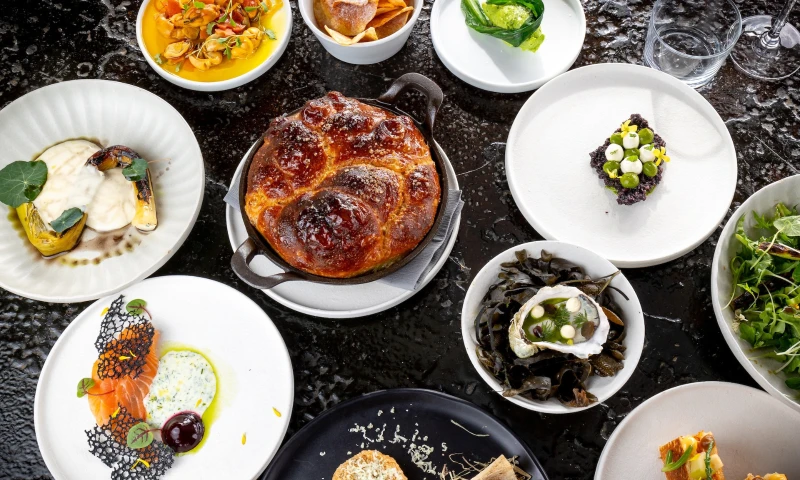 Up on the top deck, open-air dining comes with panoramic views of the city skyline. It’s the perfect spot for sharing small plates, sipping cocktails, and soaking up the atmosphere in a truly unique setting.